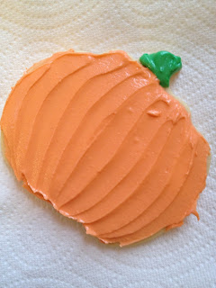 The royal icing was just thick enough that the ridges in the pumpkin stayed!
