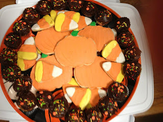 I realized that if I started making these adorable Santa's, I'd have yet ANOTHER 1/2 finished project, so I decided to just keep-on-keepin'-on with my knitting. Anyways, coming off of Thanksgiving weekend, I thought I'd post about all the pumpkin themed desserts I made (for Halloween).
