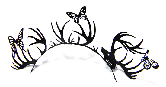 Paper eyelashes!! They were on sale at Sephora. I cut off the deer head portion and just used the other half. I went a little crazy with blue eye shadow as well. To really get the Effie look, I should have bought white face makeup - but I ran out of time, so I just went with the fact that I am very pale and that would have to do.