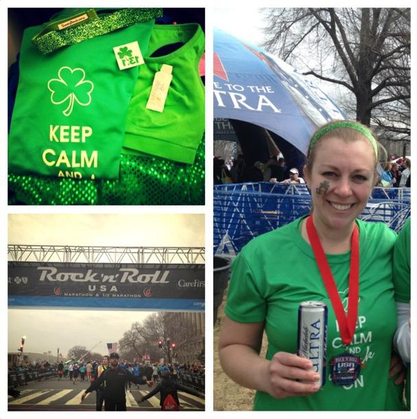 I just downloaded the Pic Stitch app. EXCITING! This picture is my race in a nutshell. Lots of green. I don't think I drank enough water beforehand because miles 5-13 were a bit of a struggle. Oops. I always think the last thing I'd want after finishing a race is a beer... but they were free so I got one anyways. I drank half, but as it was Michelob Ultra I didn't feel too guilty throwing away the rest.