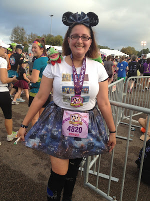 The race was so much fun: fireworks, DJs, Disney Princesses and Princes at every mile, and 22,000 people running. It's hard to beat that!! Almost everybody ran in costumes. (Look out for a follow up post on those!) My Rapunzel outfit turned out really well!
