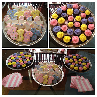 Not that these are much different from the boy baby shower cookies I posted 2 weeks ago, but here are the girl baby shower cookies/mini cupcakes I made for my friend Kim's shower. It was for her second child so it was pretty chill and also the first co-ed one I've planned. Our theme was everything mini so we had sliders, individual servings of mac n' cheese, pigs in a blanket, chicken nuggets, jello shots, and mini forks and spoons to eat everything with! The best part was baby colors = Easter colors so DOUBLE USE!