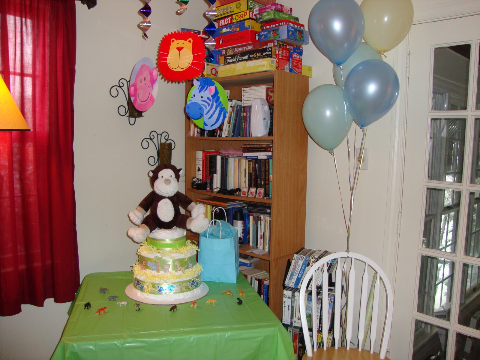 Then I topped it with a big stuffed animal monkey! Who doesn't love monkeys?