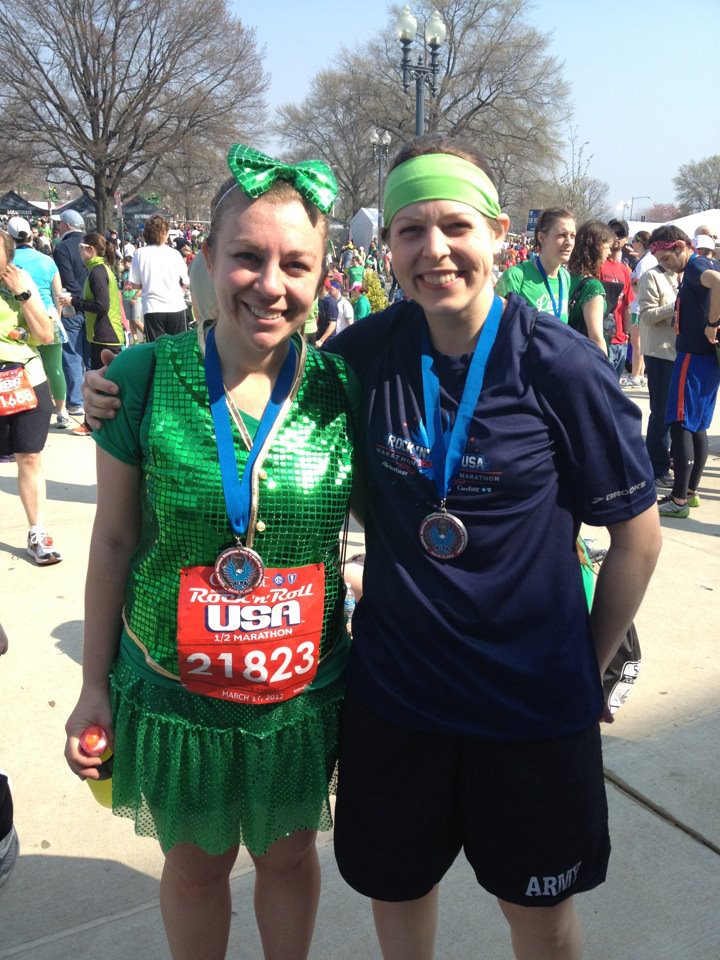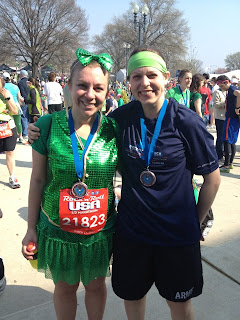 Woohoo! I finished the half in 2:22! My goal was under 2:30 so I'm happy with my time. Not nearly as happy as I was with my outfit though. I don't even remember where I got the vest from - maybe Wal-Mart? I bought it right after last St. Patrick's Day when it was on clearance. BEST PURCHASE EVER. The skirt is from Team Sparkle. I want one in EVERY COLOR.