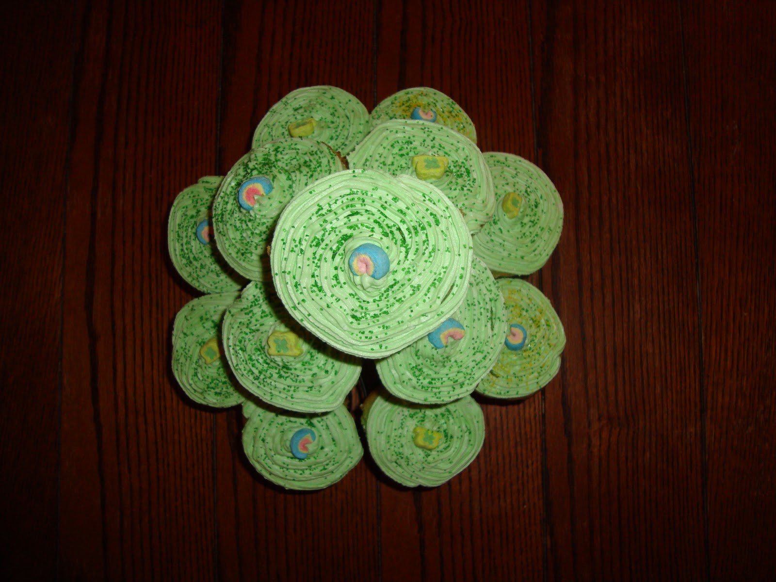 I put a lucky charm on the top of each one. Nothing too fancy, but cute for St. Patty's when you're in a time crunch. And then you have a whole box of Lucky Charms left over to eat! WIN.